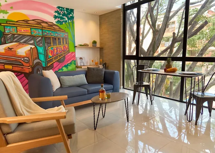 Rosa Negra Retreat Cozy Stadio Aparta-Suite está situado en el barrio Laureles - Estadio, a una distancia de 4 km del Parque Zoológico Santa Fe, muy recomendable para visitar en familia.